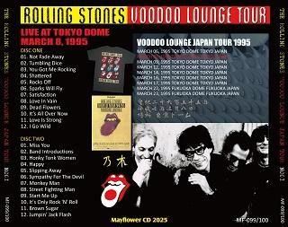 ストーンズ専門レーベルとして良質な音源、歴史的価値ある音源を厳選してリリースしているmayflowerレーベルより、またまた初登場音源がリリースになります。 1995年、二度目の来日公演となったヴードゥー・ラウンジ・ツアーより、3月8日東京ドーム公演を、高音質で完全収録!
